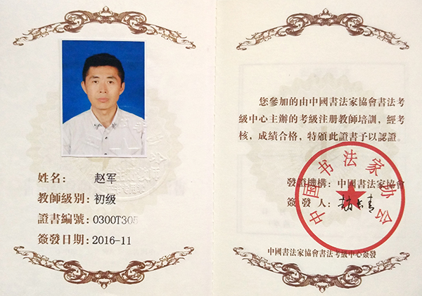 中国书法家协会初级书法注册教师