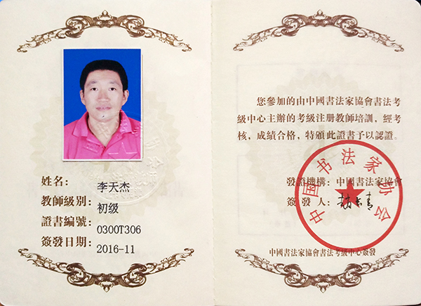 中国书法家协会初级书法注册教师