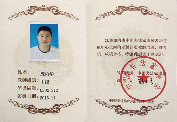 中国书法家协会中级书法注册教师