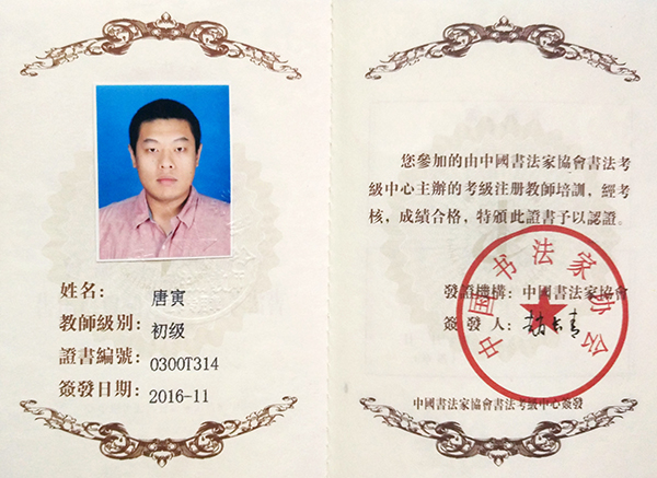 中国书法家协会初级书法注册教师