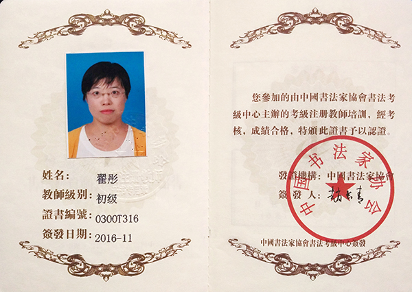 中国书法家协会初级书法注册教师