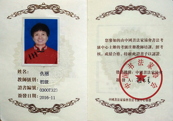 中国书法家协会初级书法注册教师