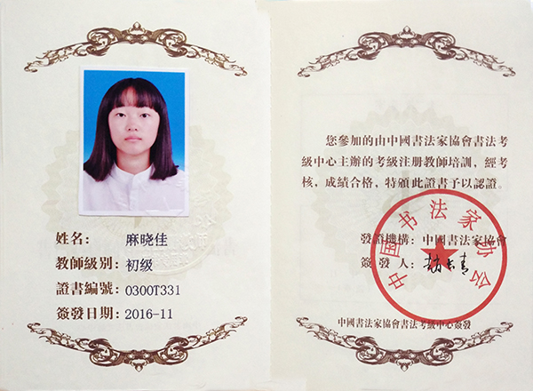 中国书法家协会初级书法注册教师