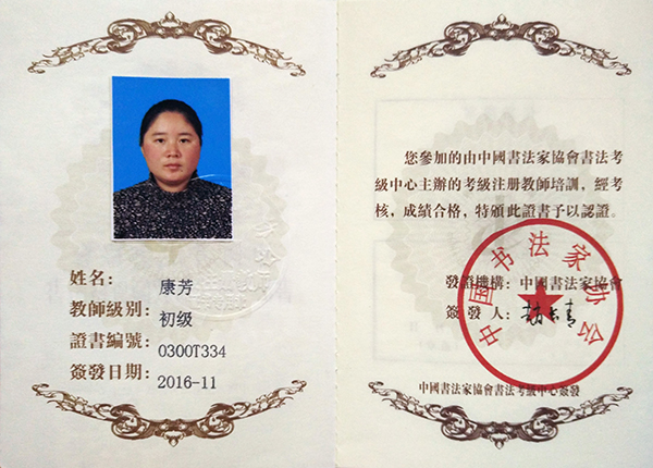 中国书法家协会初级书法注册教师
