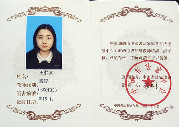 中国书法家协会初级书法注册教师