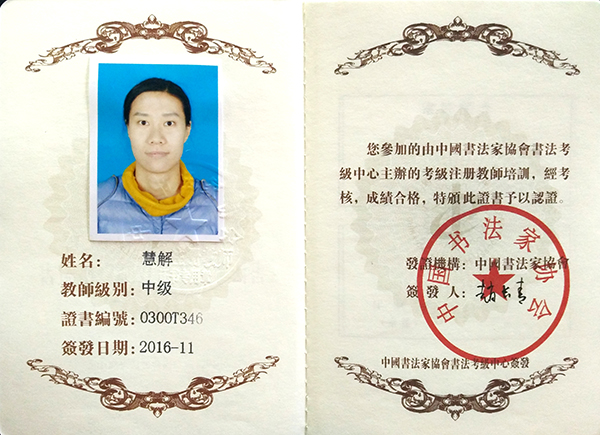 中国书法家协会中级书法注册教师
