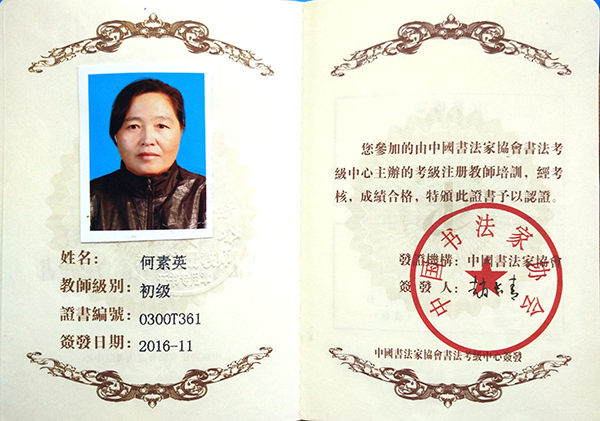 中国书法家协会初级书法注册教师