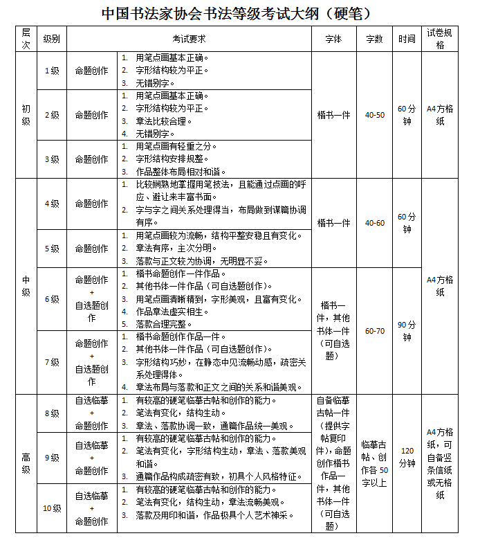 2、考试用笔为钢笔、签字笔,仅1-3级可用铅笔。