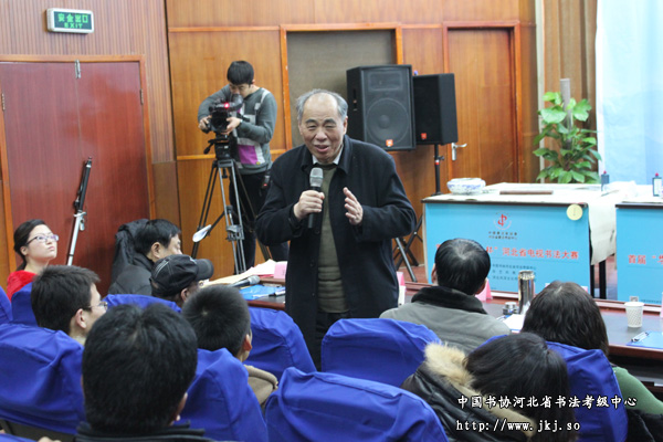 华艺风杯电视书法大赛评委会主任、首都师范大学书法教授、著名古文字学家卜希旸先生现场点评