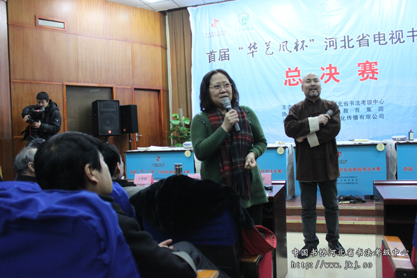 华艺风电视大赛由河北省电视台著名导演、主持人郑标,中国书协河北省书法考级中心秘书长冯欢主持