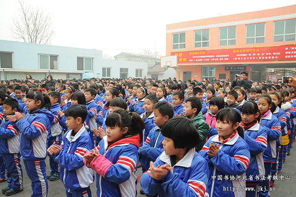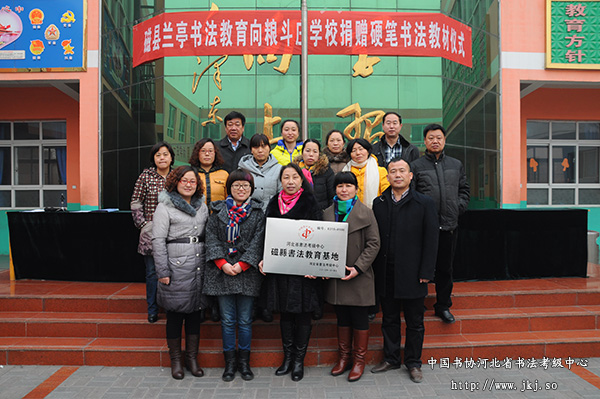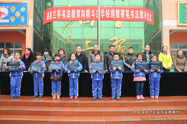 2015年1月14日,磁县兰亭书法教育向粮斗庄学校捐赠硬笔书法教材仪式在粮斗庄学校操场成功举行。