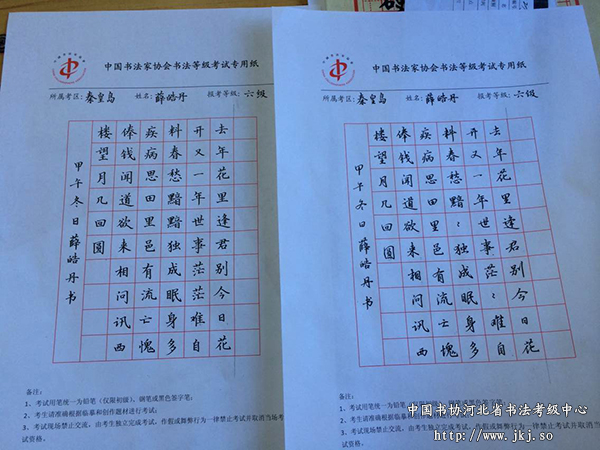 秦皇岛市首次硬笔书法等级考试圆满结束