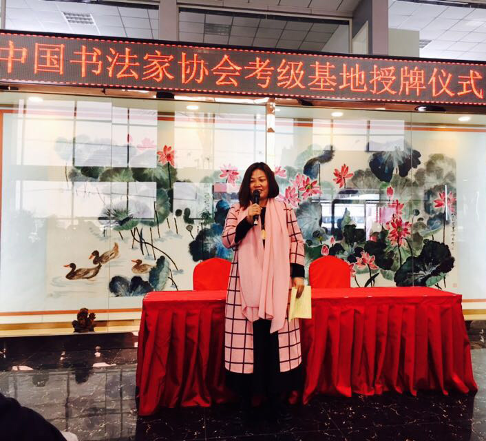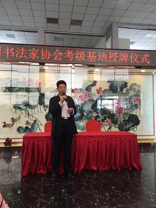 中国书协河北省书法考级中心主任曹晓林为廊坊市考级基地授牌