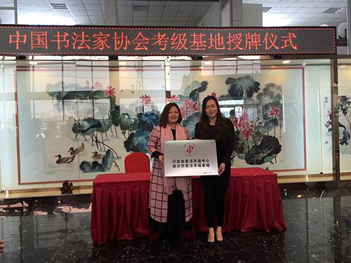中国书协河北省书法考级中心主任曹晓林和廊坊市考级基地主任郭会苓为三河市、永清县、香河县考级工作站授牌
