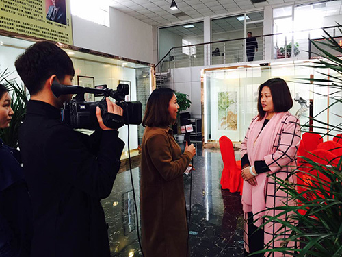 中国书协河北省书法考级中心主任曹晓林在接受电视台采访