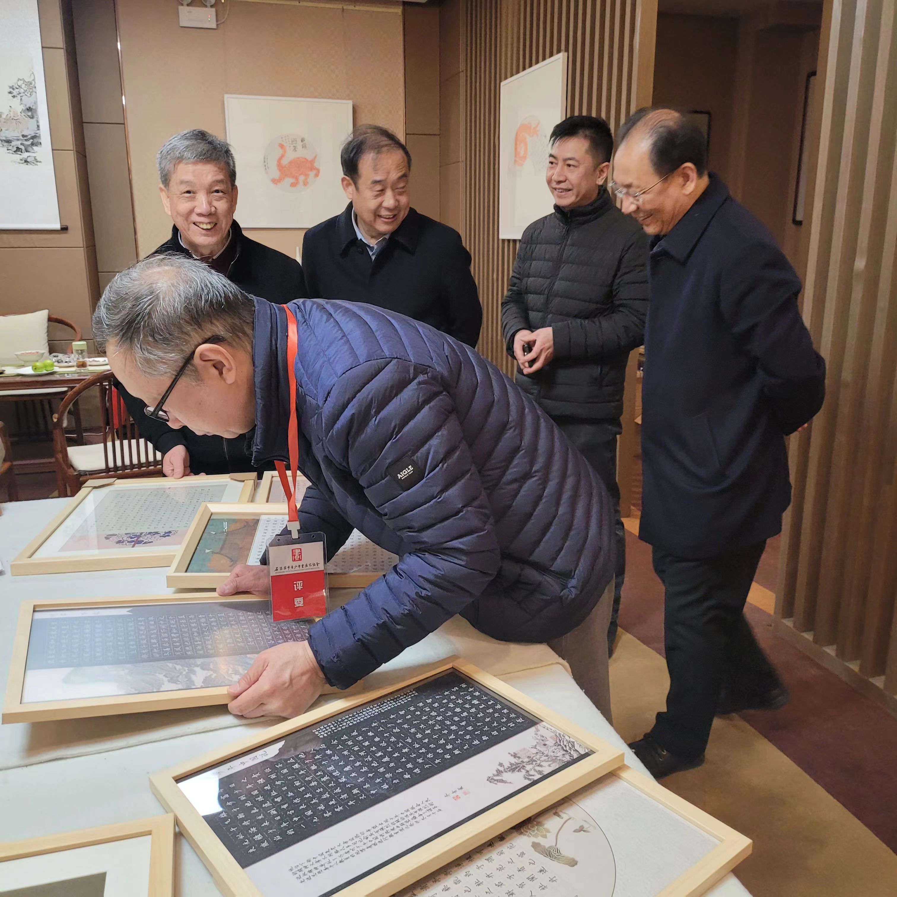 2024年3月12日,由石家庄市教育局、共青团石家庄市委主办,石家庄市青少年书画家协会、石家庄市青少年宫承办的石家庄市首届青年教师书法作品展在石家庄市青少年书画家协会进行评选工作。