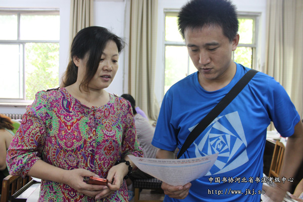 中国书协河北省书法考级中心主任曹晓林与学员亲切交谈
