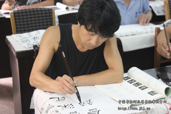 学员按照中书协书法考级教材临摹学习